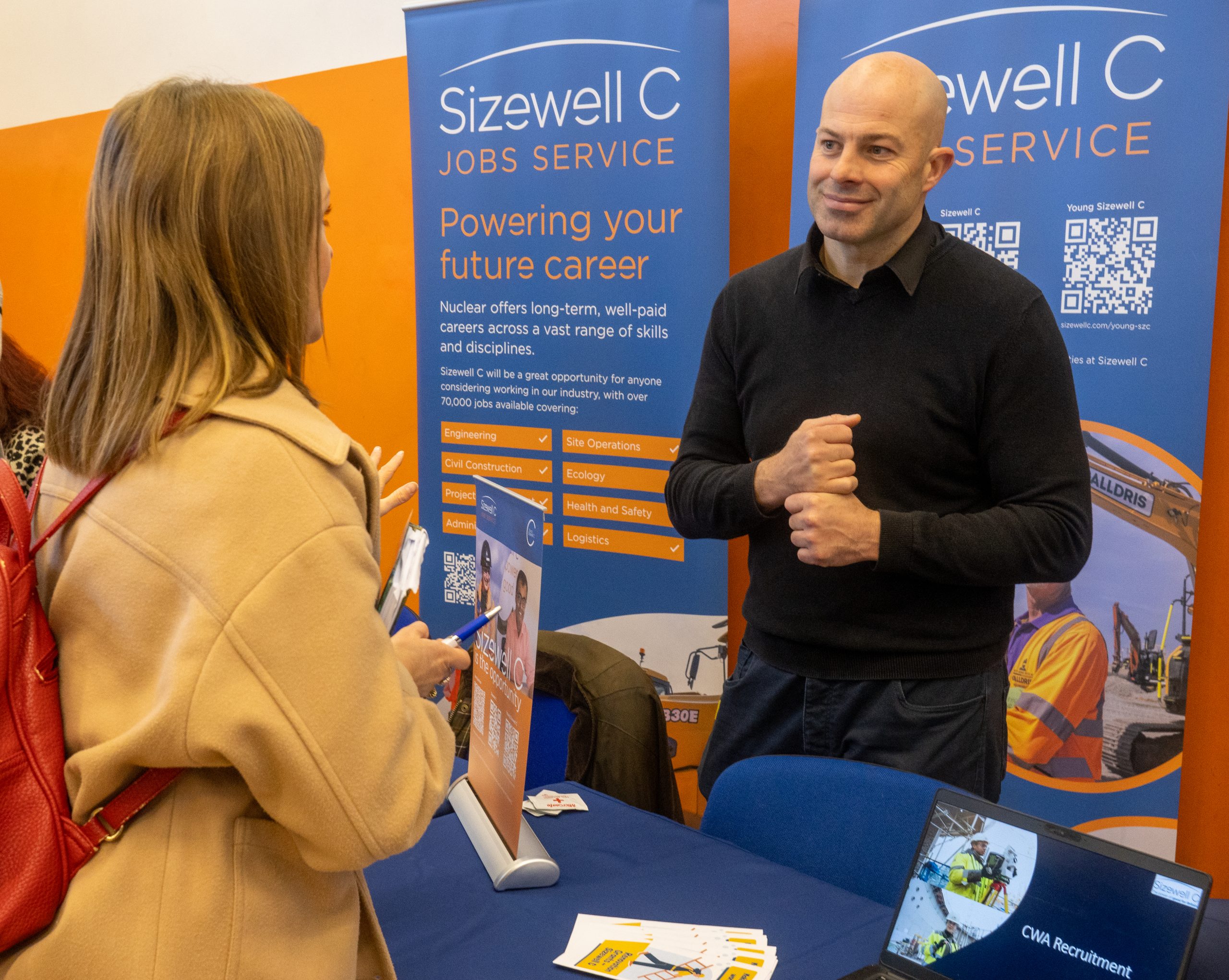 David Wake, Head of Corporate Social Responsibility for Galldris, a civil engineering specialist working on Sizewell C, said: “We’re really pleased to be here supporting the Sizewell C jobs fair. It’s great to see the enthusiasm from local people all looking to get onto one of the biggest projects in Europe. The day has been really busy, it’s been non-stop since it’s opened, and we’ve had some really good candidates come through so we’re really optimistic.”